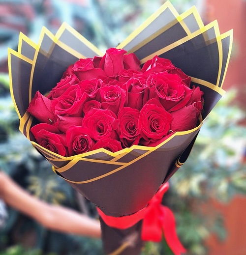 Sorprende con este elegante ramo buchón de aproximadamente 35 rosas rojas frescas, cuidadosamente seleccionadas y envueltas en finos papeles decorativos, ideal para celebrar momentos especiales con un detalle inolvidable.