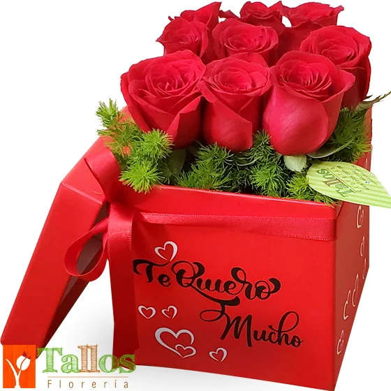 ❤️ Caja Roja “Te Quiero Mucho” con 9 Rosas Rojas